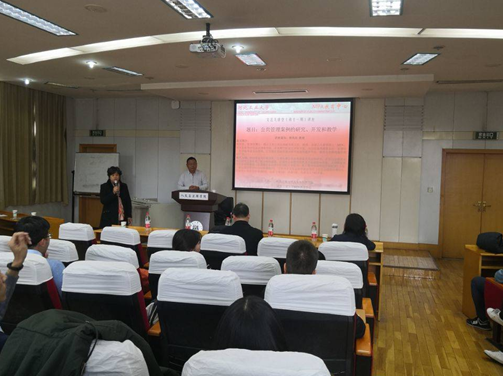2019年11月24日,管理学博士,燕山大学公共治理研究所主任,韩兆柱教授应邀莅临文法学院,与MPA教育中心部分教师进行了座谈,并在江南娱乐客户端官网红桥校区丁字沽一号路北院专硕中心209为2019级MPA学生做讲座,讲座题目为“公共管理案例的研究、开发和教学”。韩教授主要从事公共治理理论及其应用研究,在公共治理理论前沿研究方面取得了较丰硕的成果,在国内公共管理学界具有较高的知名度。他是全国公共管理硕士(MPA)研究生优秀学位论文评审专家,多家期刊社论文评审专家,河北省高等教育本科(管理学)教学指导委员会委员,江苏服务型政府建设研究基地特邀研究员,秦皇岛市委特邀咨询研究员,一人身兼数职。讲座由MPA教育中心孔金平主任主持,文法学院李艳双院长、马立民副院长、部分教师以及MPA全体学员认真聆听了本次讲座。